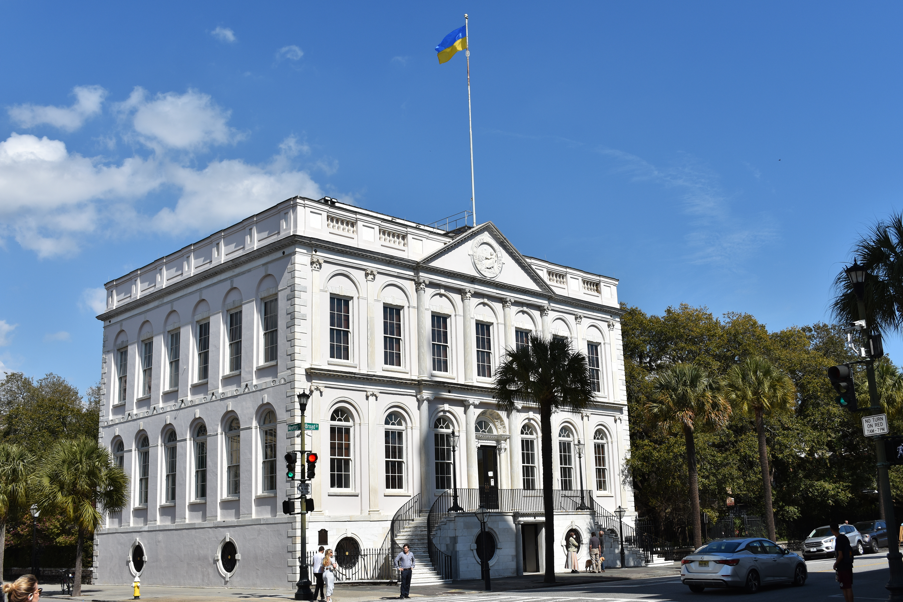 Today, Charleston Mayor John Tecklenburg released the following statement in support of the Ukrainian people as the flag of Ukraine flies at City Hall (photo here):